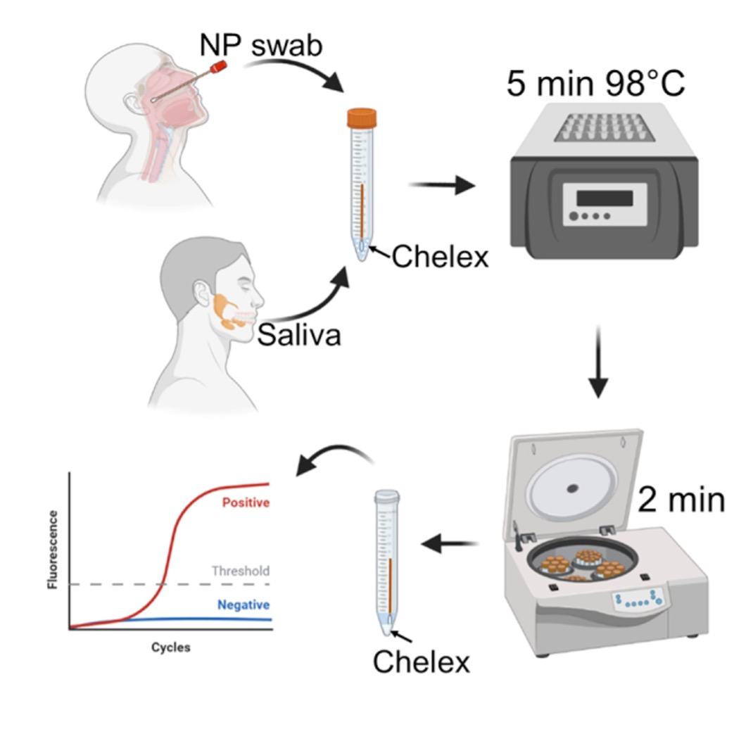 Current diagnostic tests for COVID-19 and other viruses require RNA extraction and analysis of the extracted RNA sample. NIH Inventors have developed a novel, improved sample preparation method that eliminates the need for an RNA extraction step. The inventors discovered that incorporating a chelating agent into the RT-qPCR heating step ties up the magnesium and calcium ions needed for RNase activity, thereby increasing the amount of RNA produced for analysis. It also removes potential inhibitors of RT-qPCR and inactivates SARS-CoV-2 infectivity, which improves workflow safety and eliminates the need for a BSL-2 testing facility.